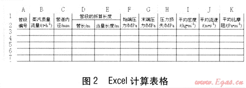 雖然蒸汽管網(wǎng)的水力計算不涉及復(fù)雜的數(shù)學理論,但其計算的重復(fù)性及參數(shù)的頻繁調(diào)整給手工計算帶來了諸多不便。因此,推導(dǎo)出適合工程計算的數(shù)學計算式,制作出科學的Excel計算表格,有利于提高工程設(shè)計的效率和準確度。