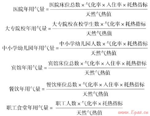 商業(yè)用戶年用氣量=醫(yī)院年用氣量+大專院校年用氣量+中小學(xué)幼兒園年用氣量+賓館年用氣量+餐飲年用氣量+職工食堂年用氣量+其他各類小型商業(yè)用戶年用氣量
