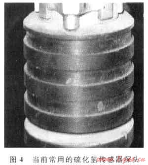 從對井場硫化氫檢測傳感器的調(diào)研結(jié)果知道,目前井場常用的硫化氫傳感器檢測膜都凹進(jìn)去的,四周的硫化氫并不容易進(jìn)入檢測膜,它主要是靠硫化氫在傳感器下部堆積到一定程度后才進(jìn)入到傳感器探測面,而在有風(fēng)的環(huán)境,這種檢測形式會造成測量數(shù)據(jù)不準(zhǔn)甚至測量不出有硫化氫,容易貽誤大好時機(jī)。圖4所示的是現(xiàn)場應(yīng)用最多的國外生產(chǎn)的硫化氫傳感器。
