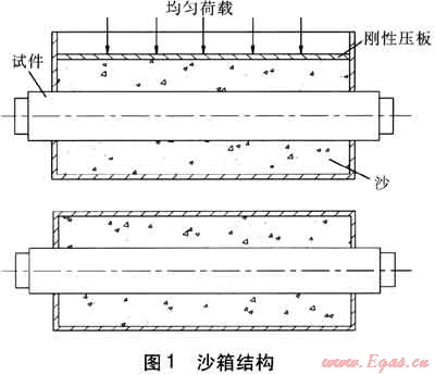 沙箱結(jié)構(gòu)見(jiàn)圖1。沙箱試驗(yàn)即在沙箱中安裝由工作管、保溫層、外護(hù)鋼管組成的直埋蒸汽管道成品試件,沙箱中填沙,沙層上承受均布荷載,傳動(dòng)機(jī)構(gòu)連接工作管,帶動(dòng)工作管作一定速度的往復(fù)運(yùn)動(dòng),分別測(cè)試空載和加載時(shí)的推(拉)力。