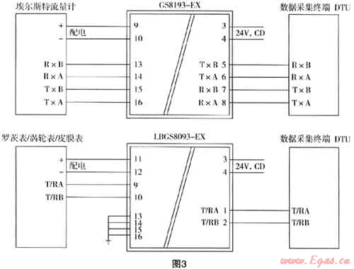 埃爾斯特流量計采用的是六線制輸出,一般采用GS8193-EX系列安全柵,同時配裝信號浪涌保護器。