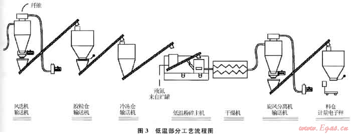 2 常溫和低溫相結(jié)合的橡膠粉碎工藝