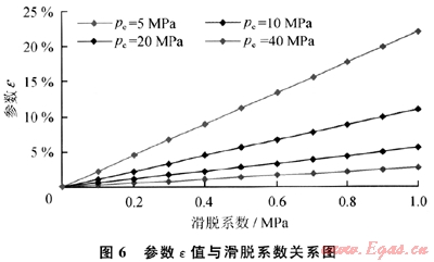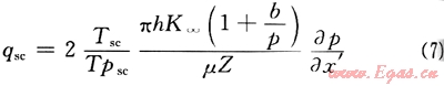 由圖6及式(11)可以看出:滑脫系數(shù)(b)越大,供給邊界壓力(pe)越小,參數(shù)ε越大,氣體滑脫對氣井生產(chǎn)影響越大;當(dāng)邊界壓力(pe)較低時(如pe≤5MPa),參數(shù)e受滑脫系數(shù)(b)影響較大,氣體滑脫效應(yīng)對氣井生產(chǎn)影響較大;而當(dāng)邊界壓力(pe)較大時(如pe≥10MPa),參數(shù)ε受滑脫系數(shù)(b)影響較小,氣體滑脫效應(yīng)對氣井生產(chǎn)影響較小,小于10%。這一計(jì)算結(jié)果與室內(nèi)巖心滲流實(shí)驗(yàn)結(jié)果也是完全一致的,說明低滲氣藏儲層滑脫效應(yīng)決定于孔隙壓力大小的結(jié)論是正確的。