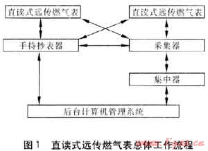 直讀式遠(yuǎn)傳燃?xì)獗砑捌涔芾硐到y(tǒng)的總體工作流程見圖1。