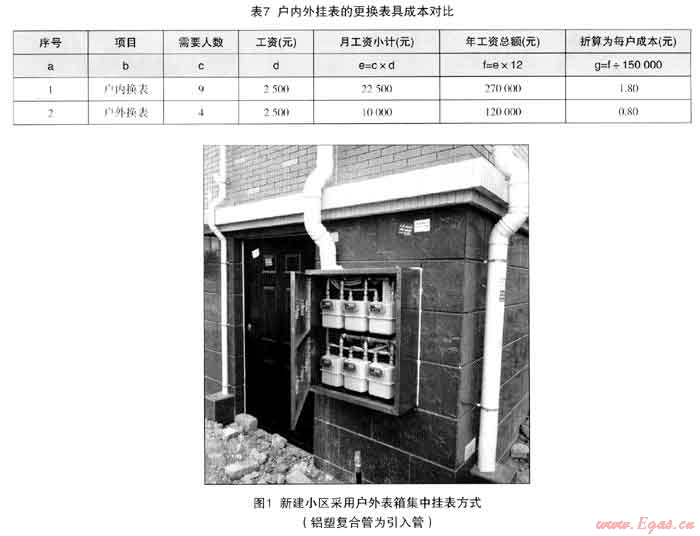 (3) 燃氣表出戶,使用戶室內(nèi)接頭數(shù)量大為減少,潛在漏氣點也相應(yīng)減少,將大大降低燃氣泄漏的風險,也有利于燃氣公司的集中管理和安檢維護。