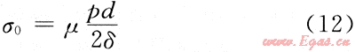 式中:σ0為管道的軸向應(yīng)力,MPa;μ為泊桑比,取0.3;δ為管道壁厚,mm;p為管道設(shè)計內(nèi)壓力,MPa;d為管道內(nèi)徑,mm。