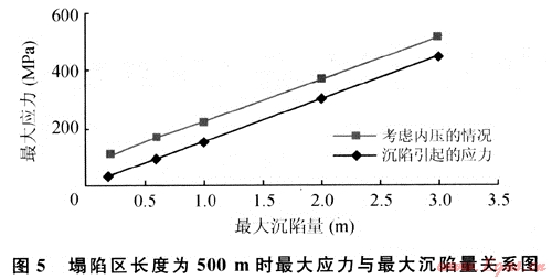 1) 在開采沉陷區(qū),當沒有發(fā)生塌陷時,埋地管道所承受的應(yīng)力主要是其內(nèi)壓產(chǎn)生的軸向拉應(yīng)力;而當發(fā)生塌陷時,埋地管道所承受的應(yīng)力主要是其內(nèi)壓和因塌陷產(chǎn)生的管道軸向拉應(yīng)力之和。