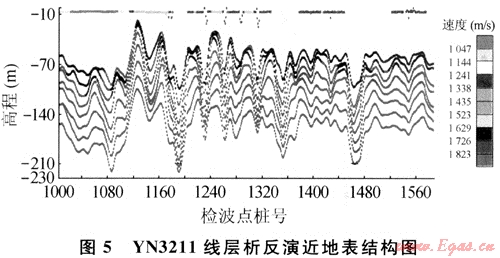 參考文獻(xiàn)[3]第一次應(yīng)用具有先驗(yàn)信息(初至折射波)的反演方法,獲得了較準(zhǔn)的近地表結(jié)構(gòu)。