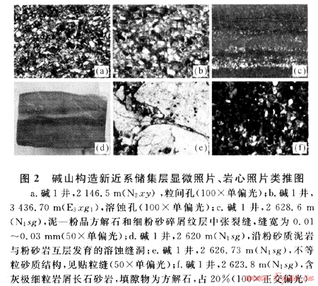 儲層巖性為泥質(zhì)粉砂巖、粉砂巖、細砂巖、泥灰?guī)r和灰質(zhì)砂巖類,沉積物粒級偏細。儲集空間以原生粒間孔隙為主,存在部分溶蝕孔隙和溶蝕裂縫(圖2)。