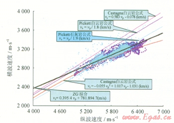 根據(jù)這些關(guān)系式的原理,在塔中地區(qū),通過實測的縱橫波數(shù)據(jù)擬合出適合本區(qū)的縱橫波關(guān)系式,用以進(jìn)行橫波估算。即