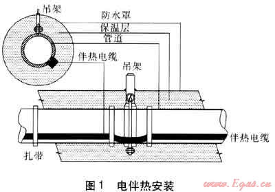 電伴熱的功能是通過(guò)伴熱電纜用電能彌補(bǔ)管道燃?xì)庠谑褂眠^(guò)程中的熱損失或提高管道燃?xì)饩植康臏囟?,使管道燃?xì)饩植康臏囟染S持在一定的范圍內(nèi)。