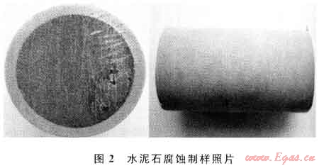 通過對目前國內(nèi)外開展的水泥石抗酸性介質(zhì)腐蝕能力的文獻(xiàn)資料調(diào)研,發(fā)現(xiàn)以往的腐蝕實(shí)驗(yàn)均是采用將水泥石樣完全浸泡在酸性環(huán)境下進(jìn)行試驗(yàn)的實(shí)驗(yàn)手段[1~3],但實(shí)際上,井下水泥環(huán)受到腐蝕是從氣層和水泥環(huán)的接觸界面開始的,而并非水泥環(huán)整體同時(shí)受到腐蝕,因此以往水泥石受酸性氣體腐蝕的實(shí)驗(yàn)結(jié)果與實(shí)際情況并不完全吻合。