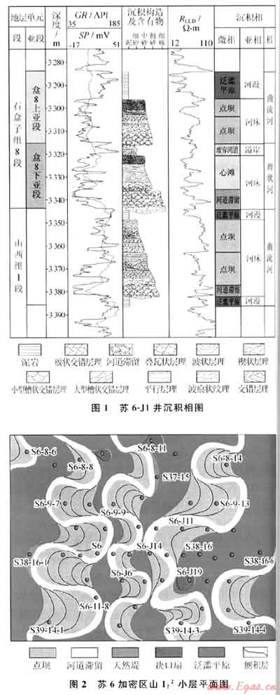 在河流相構(gòu)型單元中,河道砂體構(gòu)型單元、溢岸構(gòu)型單元相當(dāng)于傳統(tǒng)沉積微相概念中的微相組合國(guó)模,點(diǎn)壩、天然提、決口扇等則相當(dāng)于單一微相,而點(diǎn)壩內(nèi)部的側(cè)積體、側(cè)積面等則相當(dāng)于單一微相的內(nèi)部單元。構(gòu)型研究比傳統(tǒng)的沉積微相研究更為精細(xì),目前我國(guó)油氣田生產(chǎn)部門(mén)對(duì)儲(chǔ)層研究多限于單一微相級(jí)別,對(duì)單一微相內(nèi)部的結(jié)構(gòu)單元研究很少,然而,這些微相內(nèi)部的構(gòu)型單元對(duì)油氣層內(nèi)部剩余油氣分布及開(kāi)發(fā)效果具有十分重要的控制作用。在蘇里格氣田高效開(kāi)發(fā)過(guò)程中,開(kāi)展高效開(kāi)發(fā)先導(dǎo)試驗(yàn)區(qū)的儲(chǔ)層構(gòu)型研究,使蘇里格氣田的儲(chǔ)層研究更加精細(xì)化和定量化。