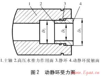 式中F——高壓水對(duì)靜環(huán)的推力,N