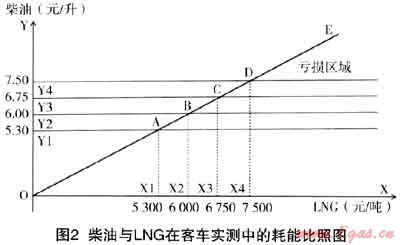 到目前為止,全國已經(jīng)投產(chǎn)的LNGX:廠超過40家,在建和準(zhǔn)備前期手續(xù)的超過30家,預(yù)計到“十二五”末期,LNG工廠總產(chǎn)能將超過1000萬t。全國已經(jīng)投產(chǎn)的接收站共有5個,在建的接收站有2個。十二五”期間,我國將建設(shè)LNG接收站17座,年接收能力超過5000萬t。LNG槽車運(yùn)輸能力隨著LNG市場覆蓋率的增加而大幅提高,擁有超過100輛槽車運(yùn)載能力的企業(yè)不少于3家,小型LNG槽船也將在近期內(nèi)投入市場。國內(nèi)LNG利用初期主要是通過衛(wèi)星站形式供應(yīng)小區(qū)、大型工業(yè)及小規(guī)模城市,進(jìn)口LNG因?yàn)椴少徚看笾饕?yīng)電廠及大中城市。根據(jù)跟車實(shí)測,客車百公里消耗燃料量以公斤為計量單位的LNG數(shù)值和以升為計量單位的柴油數(shù)值是近似的。圖2可以反映兩種燃料實(shí)際使用的成本差距。過去18個月,華東地區(qū)LNG衛(wèi)星站到岸均價維持在5500元/t左右。至少25%的價格差距促使LNG將逐漸擠占汽柴油的市場份額,重型卡車、長途客車以及船舶LNG利用市場將會呈現(xiàn)爆炸式增長。單一的大型LNG倉儲業(yè)務(wù)國內(nèi)尚未有投資人涉及。LNG冷能利用是能源綜合利用的一個方向。
