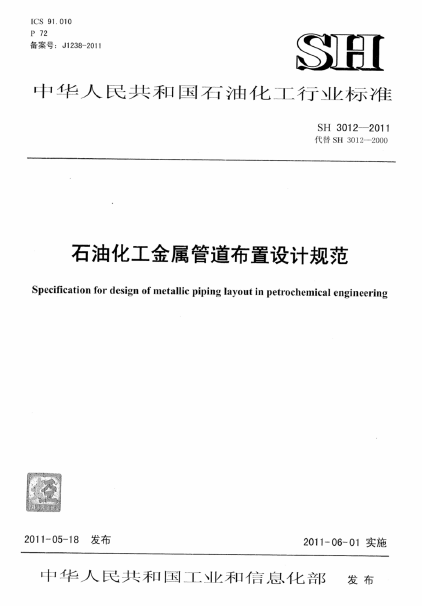 石油化工金屬管道布置設(shè)計(jì)規(guī)范 SH 3012-2011 共分13章。