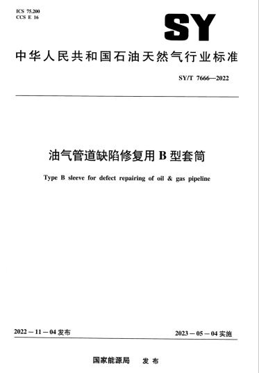 油氣管道缺陷修復(fù)用B型套筒SY/T 7666-2022